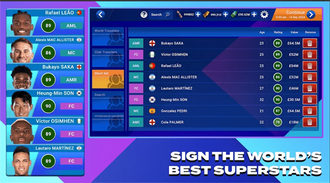 SM25 拥有来自 90 多个联赛的 900 多个俱乐部。一旦你主宰了你的梦想联赛,带领你的俱乐部在大陆舞台上也获得荣耀,成为欧洲或南美的冠军。然后,您可以成为世界各地一些世界顶级国家的国际足球经理,将您的技能推向全球。