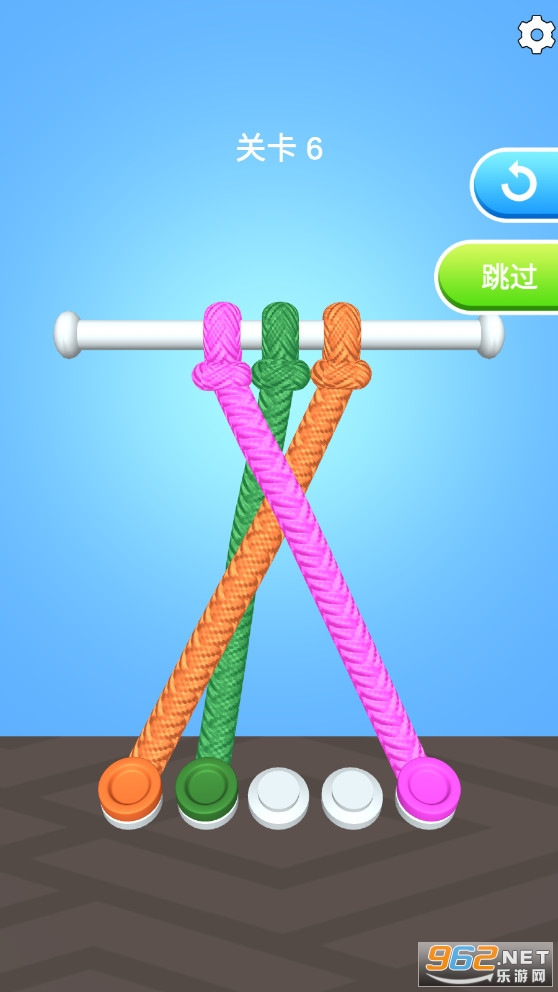 趣味的解绳子游戏,每个关卡会有着几根绳子缠绕,玩家需要移动绳结,将一根根绳子解开,全部解开之后挑战成功,难度不是很多,后期也不会有多少绳子,喜欢的朋友可以下载试试。