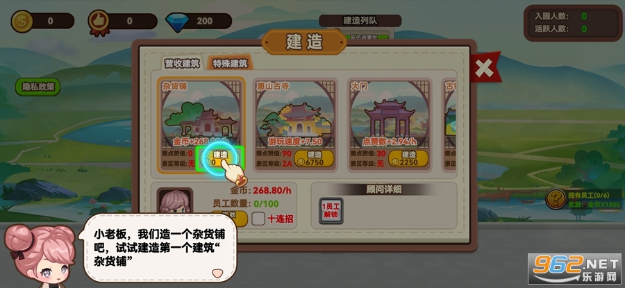 趣味的模拟经营游戏,玩家将有着一个景点,可以在这里建造各种各样的建筑,可以增加游玩项目,吸引更多的游客前来,可以招募各种员工来打理景区,不断的增加收益,扩建景区,喜欢的朋友可以下载试试。