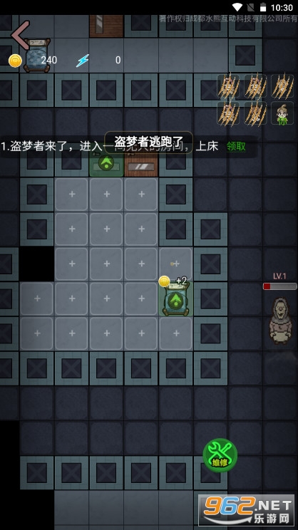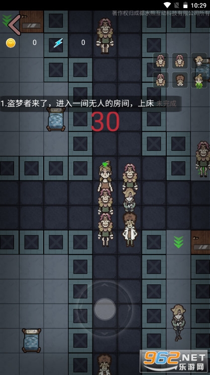 开局选择不同的身份加入到联机匹配当中,游戏开始30秒以后迅速地找到空余的房间床位并迅速关门,注意盗梦者的动向,对床铺以及铁门进行升级加固,保证自己处于更加安全的环境,如果觉得游戏体验不错的话也是可以推荐给朋友们前来体验的哦!