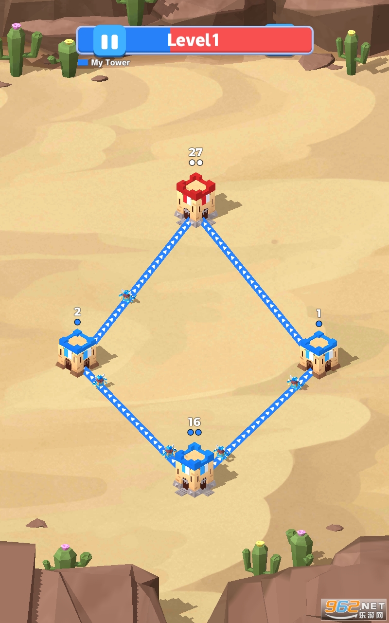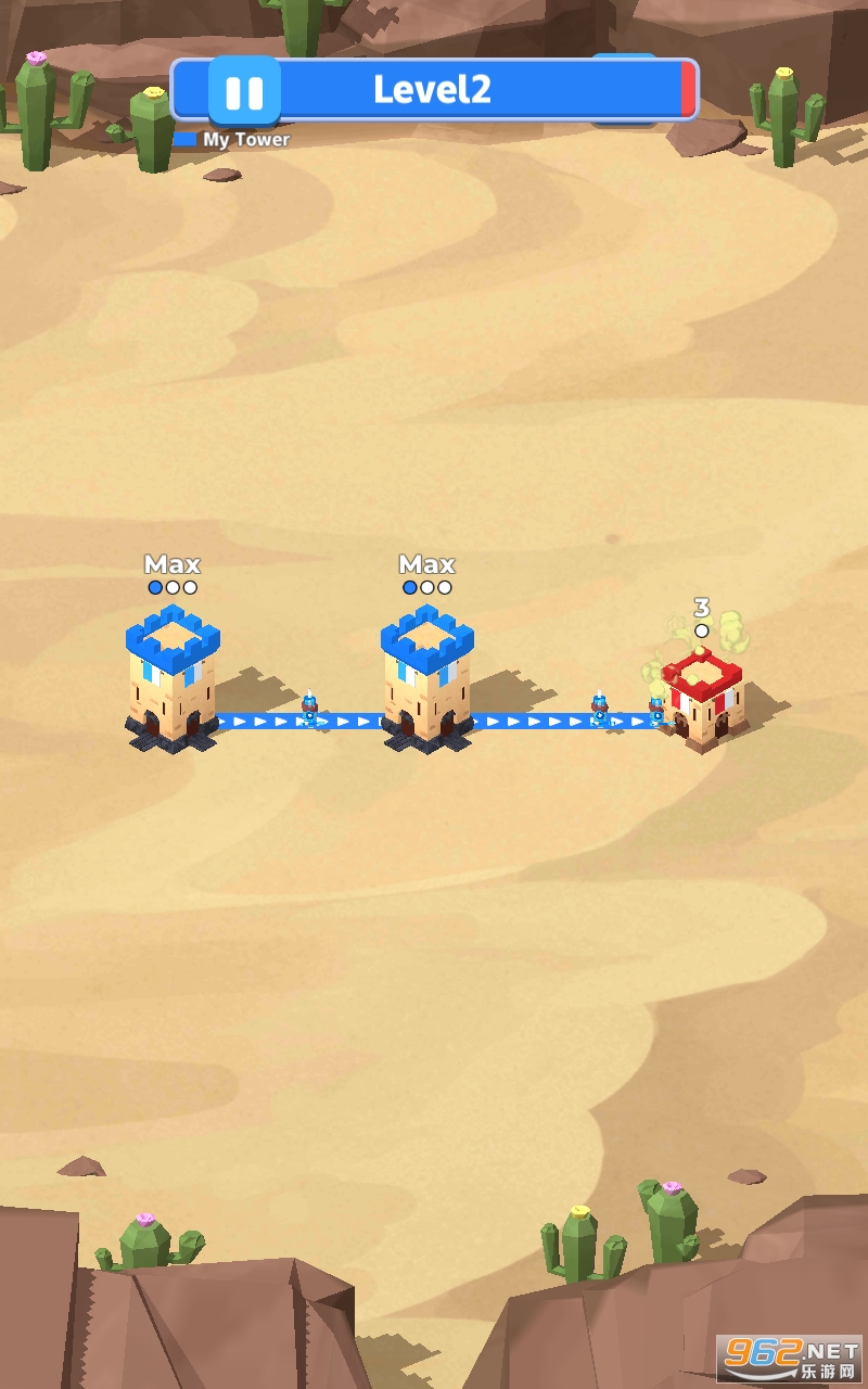 滑动手指以连接塔。你需要做的就是带领蓝色士兵守卫自己的塔,同时占领其他颜色的塔。