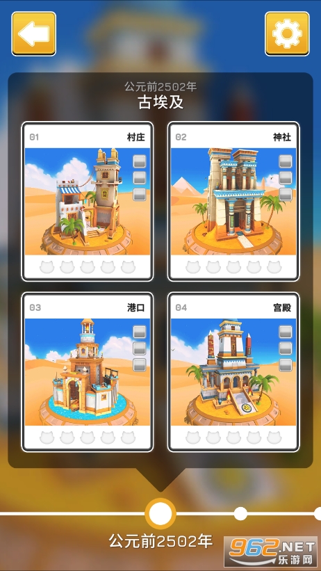 进入游戏会默认在“中世纪德国”,可向左划至第一关“古埃及-01-村庄”开始游戏