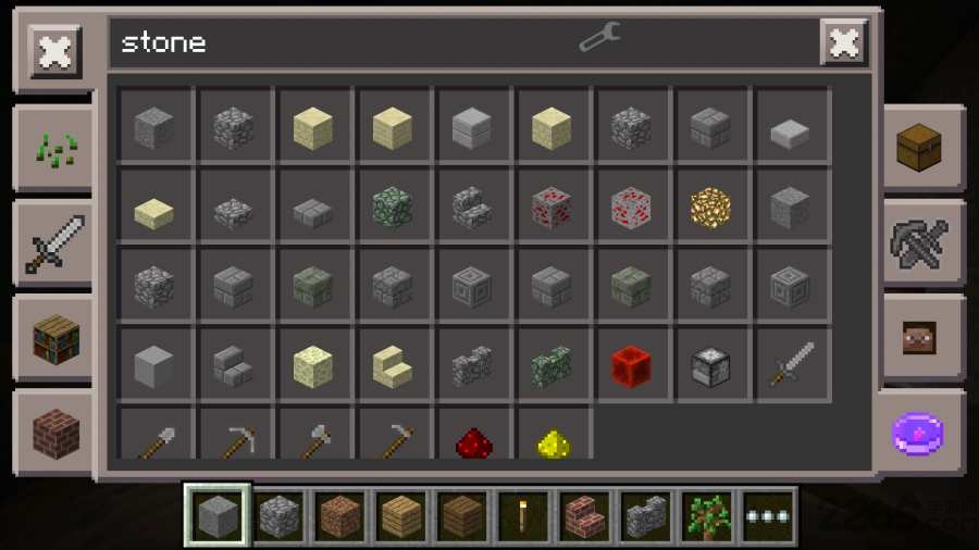 下载打开app,首先仍然是进入游戏后熟悉的M按钮,点击之后进入Toolbox的界面:我们能够添加各种物品,还能直接进行物品的名称搜索,不过遗憾的时候物品只以图标进行显示,没有显示名称: