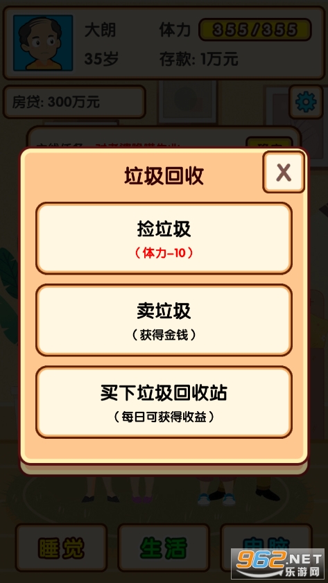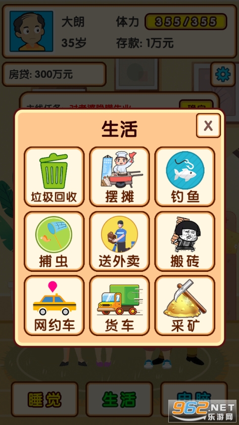 《失业模拟器》是一款好玩的模拟游戏,玩家可以选择睡觉,生活,电脑三条路线,生活中有垃圾回收,摆摊,钓鱼,捕虫,送外卖等等,会消耗体力,睡觉可以恢复体力,电脑会让你选择股票交易,购物,短视频,直播带货等等来赚钱,模拟日常的生活,体验生活百态!