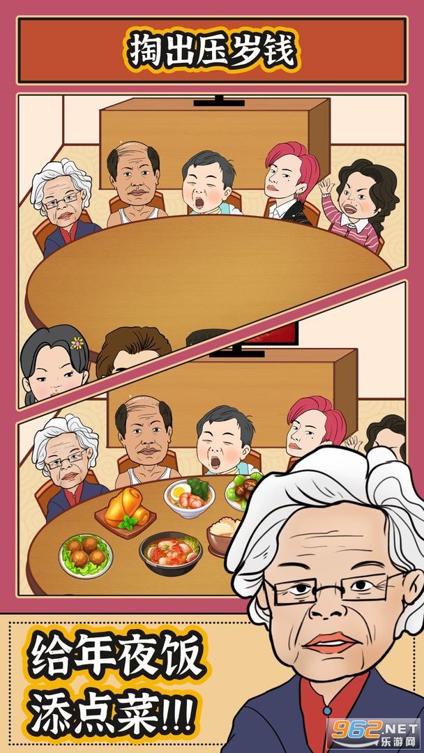 每个章节都能解锁年味浓浓的小游戏,抢红包、包饺子、帮眼花的姥姥找东西……通过小游戏赚取零花钱,为年夜饭加点菜~