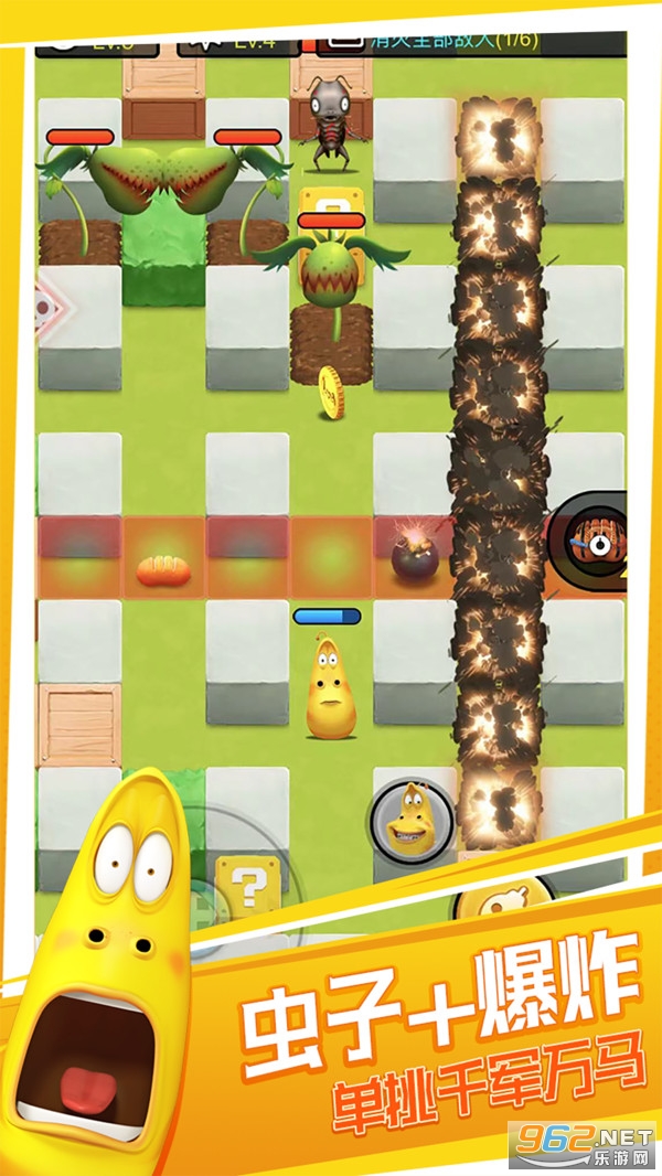 经典好玩的爆笑虫子游戏,全新风格全新玩法为你带来,成为钢铁之躯炸弹特工,你的任务艰巨,不仅要抵御邪恶的虫子保护家园,还需要救出你被困的伙伴,喜欢玩爆笑虫子系列游戏的朋友一定不要错过!