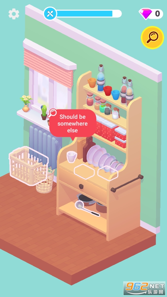 * 你也可以随时寻求帮助:不确定你要打开的东西应该去哪里?点击放大镜,游戏的帮助功能将向您展示存放每件物品的最佳位置,以最大限度地保持整洁和方便。