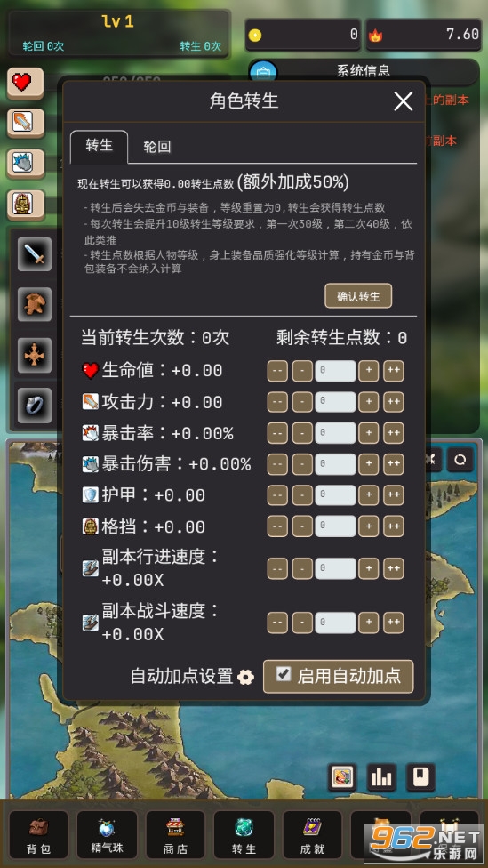 1、初期建议在换装备依旧没法提升大量等级的情况下转生,来获取转生点提升属性