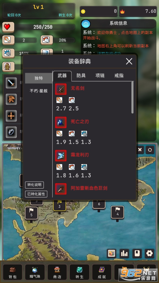 4、不朽装备的转化问题:不朽装备可以在背包点击转化,来转化为人物的永久初始属性,可以在图鉴界面查看