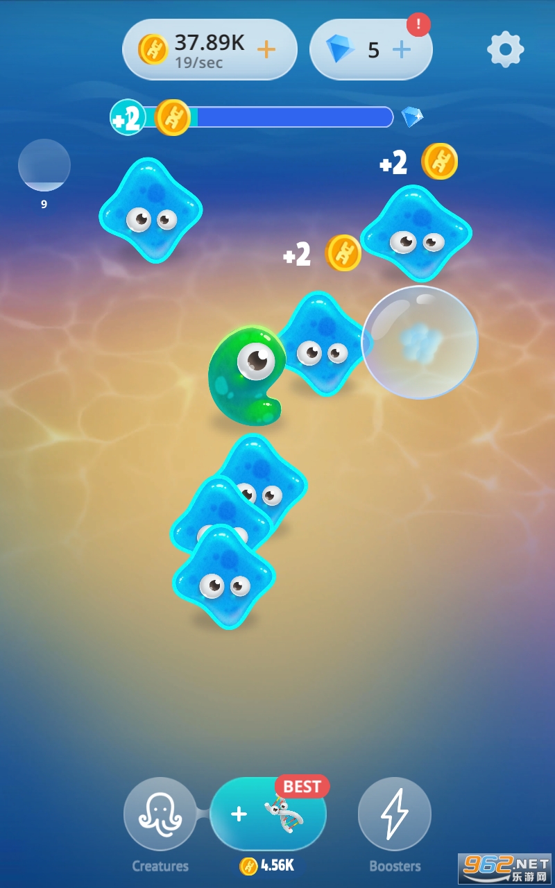 进化和升级生物 - 合并动物以获得新的品种 - 你甚至可以像着名的鱼类一样获得灵魂!探索水星并搬到土地!采取相同的野兽或原生动物,玩他们的遗传学,并享受结果!购买水晶,让你的进化更快或磁铁融合屏幕上同类的所有生物!