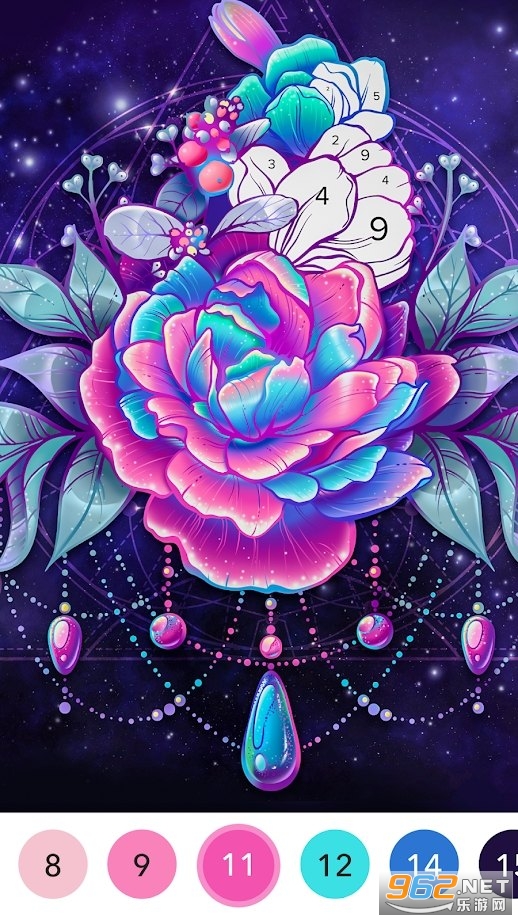3、卡通风格的数字着色游戏,每一个数字都代表着它独有的颜色;