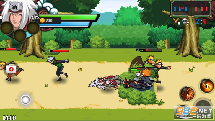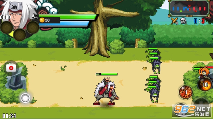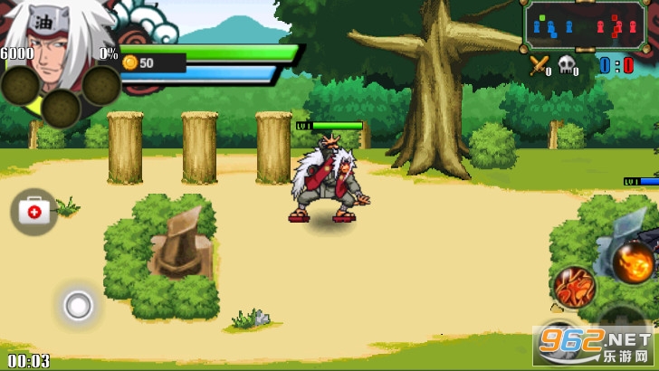 火影战记游戏操作比较简单,但可玩度极高,玩家选择一位角色与两位电脑控制的角色配合
