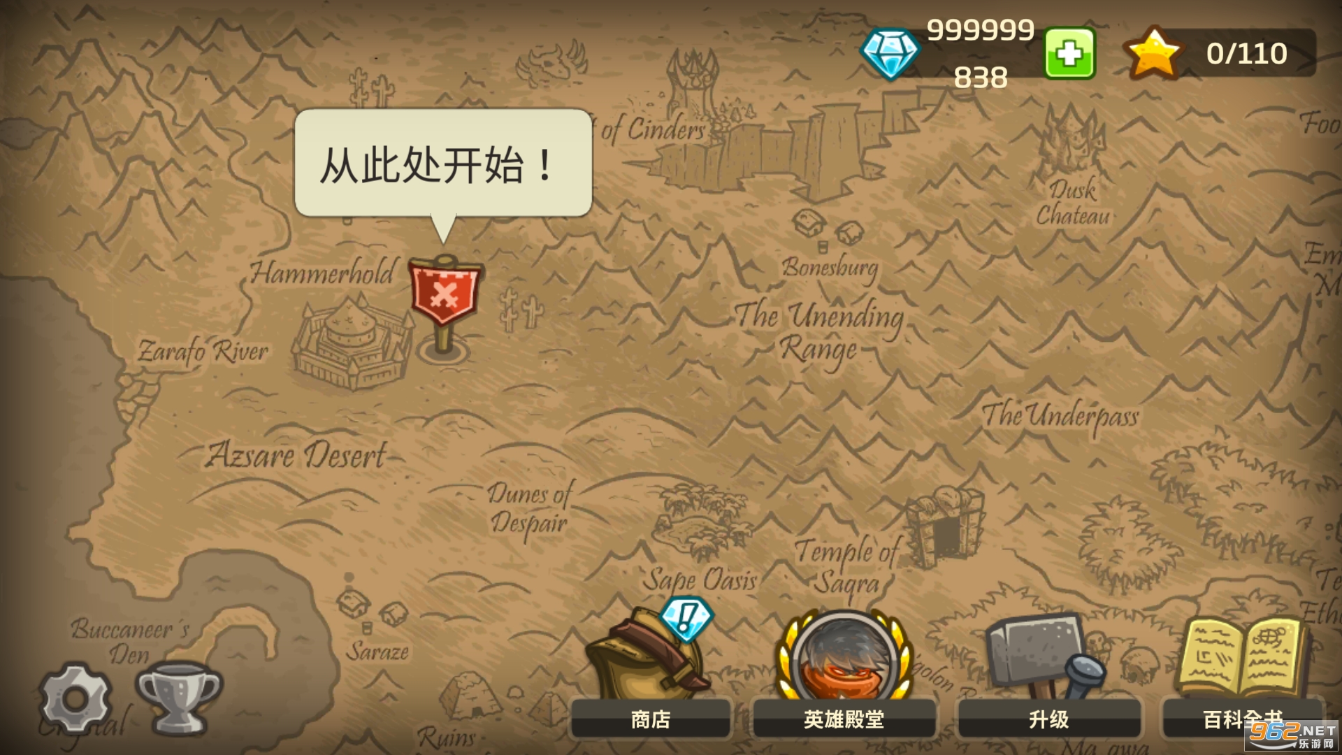 攻略:本关开始英雄可以上场,大家可以把英雄练满级再打,会比较给力。我上场的是7级战士,也够用。英雄开始时摆上方路口,初始造塔上方摆一个炸弹塔,中间和右面各放一个魔法塔,其余兵营和弓箭塔。右侧第一波用增援守一下,有钱后招2个海盗堵右边。优先升级中上的炸弹塔到顶级,然后升级中间弓箭塔到顶级,升级鹰眼增加射程。然后升级右上的弓箭塔以及右边的弓箭塔,魔法塔。本关前4波敌人都较易应付,第5,6波压力较大,特别是第6波有多个死灵召唤师,注意及时升级各个塔楼,重点升级弓箭塔配合连射技能,钱是比较充足的。本关英雄需要来回调动,左中右哪条防线吃紧就去哪边,注意步兵被火炮炸死后要及时使用增援,特别是右侧的钻地怪,很容易漏过。