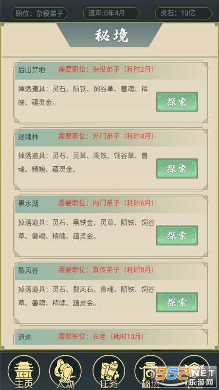 《从杂役弟子开始修仙2》是《从杂役弟子开始修仙》的续作,在2代中,我们增加了装备培养和异兽培养功能。秘境探索也不再是简单的文字显示结果,需要玩家手动探索并且与强大的秘境敌人战斗。