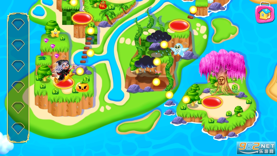 作为好女巫,您的目标是从每个世界偷回所有隐藏的宝石,然后进入下一个世界!击败 Boss,抢夺宝石,然后从森林、沙漠、迷宫等地穿越幻觉王国!