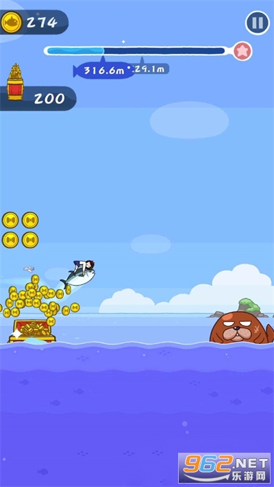 《咸鱼要上天》是一款咸鱼翻身的游戏,骑着大鱼飞上天的游戏,需要耐心找准时机,画面清新靓丽,利用弹射将少女弹到大鱼上,简单又轻松。