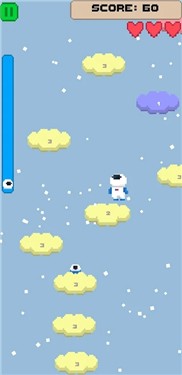 云朵飞跃(CloudMobile)非常有意思的一款轻松休闲手游,控制可爱的小人穿梭在云朵之上,带给玩家极致的休闲享受,感受简单带来的快乐。非常小清新的游戏画面,配上轻松的体验玩法,搞怪有趣的表情,像素的画面!快来试试吧!