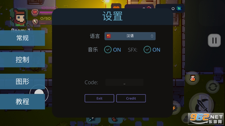 注:进入游戏点击右侧暂停键,在设置里可以切换为中文