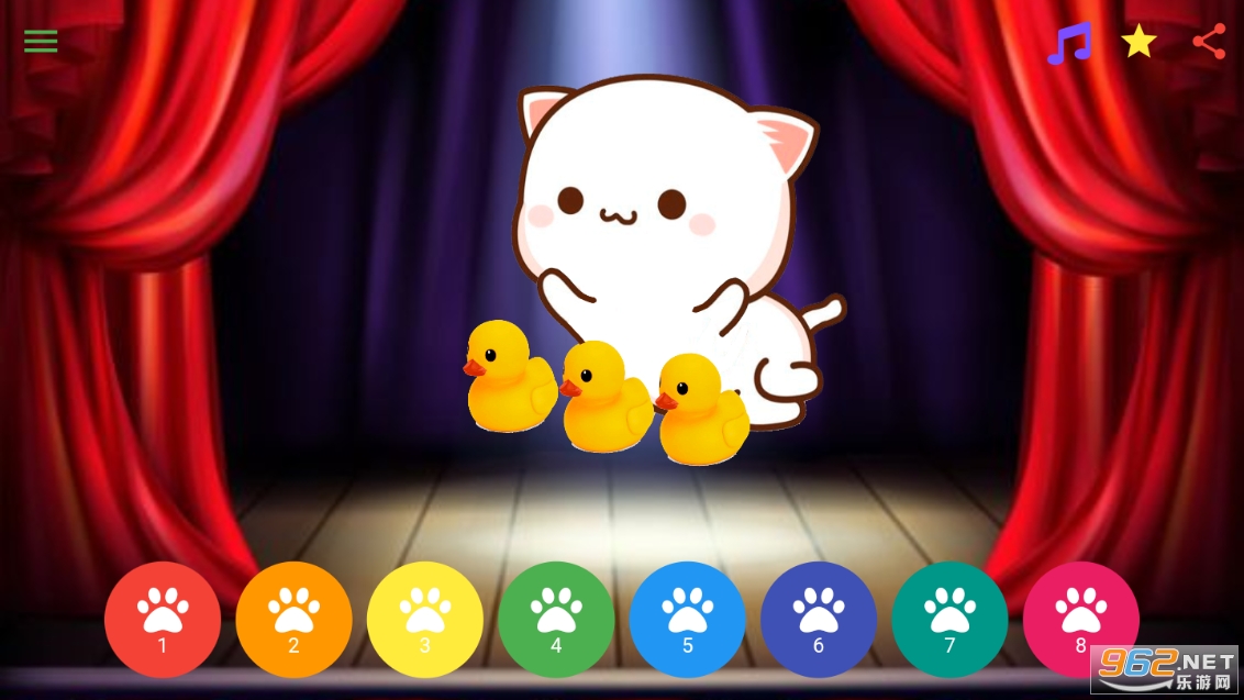 玩家在游戏中可以控制着桃猫弹奏各种不同的乐器,体验各种有意思的玩法,超可爱的卡通画面以及形象,快来和桃猫一起感受美妙的音乐吧!