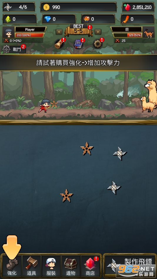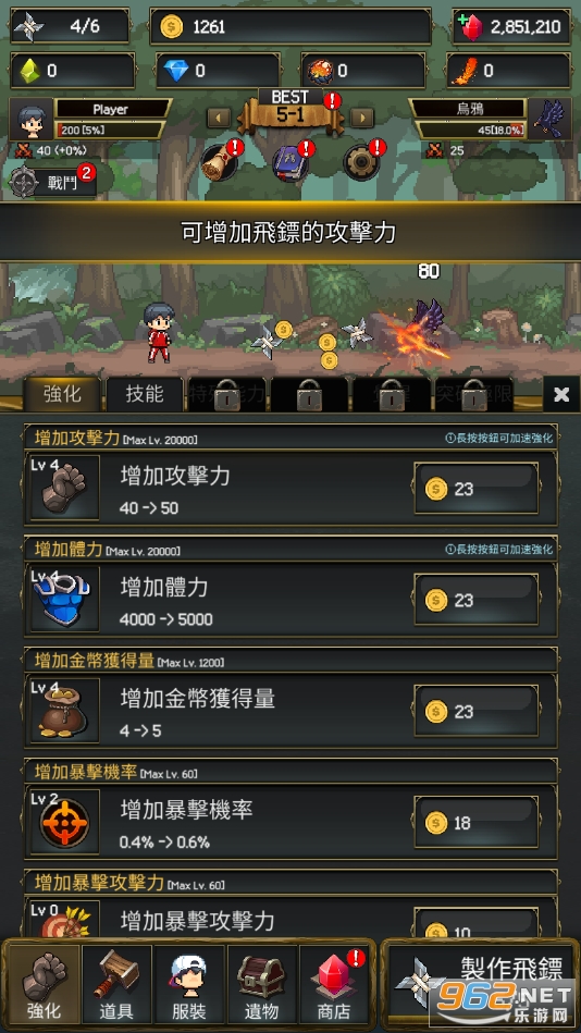 2、通过收集到的飞镖进行升级,让打造后的飞镖具有更强的攻击力和功能,游戏中的合成元素非常简单。