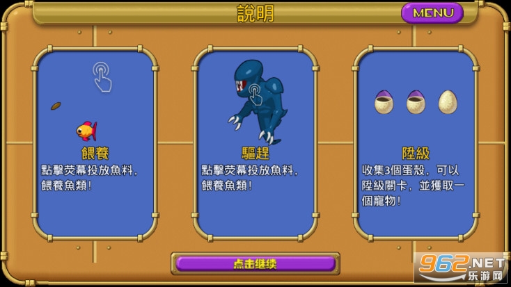 3.养育防御型的鱼来打击水族箱的入侵怪物。