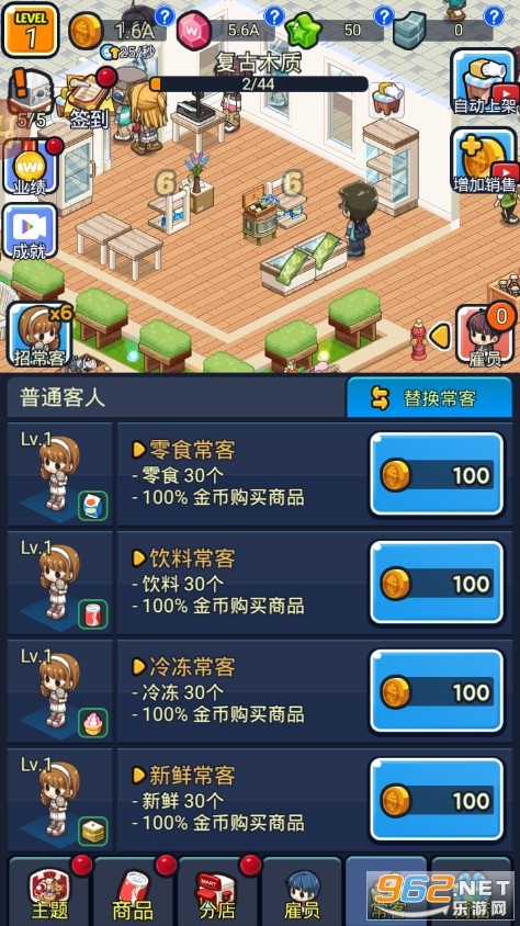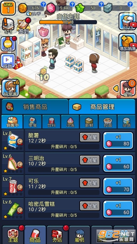 我们便利店的风格会有多种主题,玩家可以选择自己喜欢的风格主题,现代超市风格、古代风、文艺风、温馨风等等。便利店中的商品大致分成了6类,饮料、零食、冷冻、新鲜食品、拉面、杂货,我们在销售时每个大类只可以选择一种商品进行销售,所以最多只能同时销售6件商品。