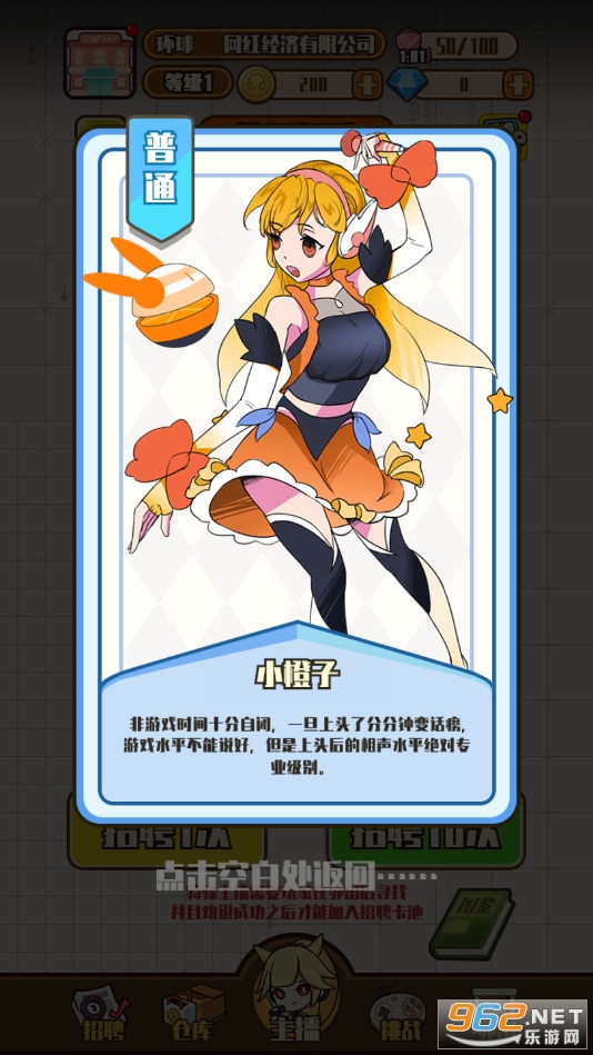 一款有趣的休闲模拟经营游戏,游戏中玩家将通过随机招募来获取各种各样不同性格的网红,培养她们并且不断的积累人气,游戏的操作简单,不断的提升粉丝数量,培训她们获取各种能力,推荐给喜欢模拟经营游戏的玩家。