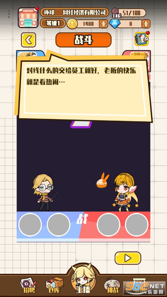 一款模拟经营网红公司的模拟类游戏,游戏中玩家需要扮演公司老板一点点扩大自己的公司,通过招募更多的主播来赚取更多的金币,扩大公司的规模,让公司上市,感兴趣的小伙伴和有需求的小伙伴欢迎在本站随时下载游玩。