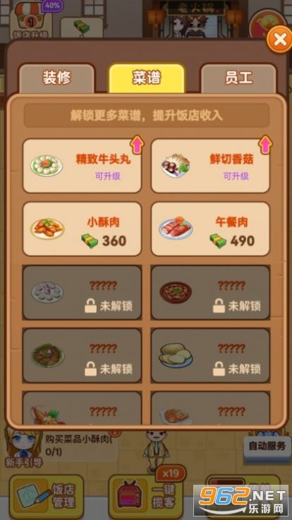 1、畅快玩的经营类游戏,有趣的设定,丰富的内容,经营好火锅店带来更多收益。