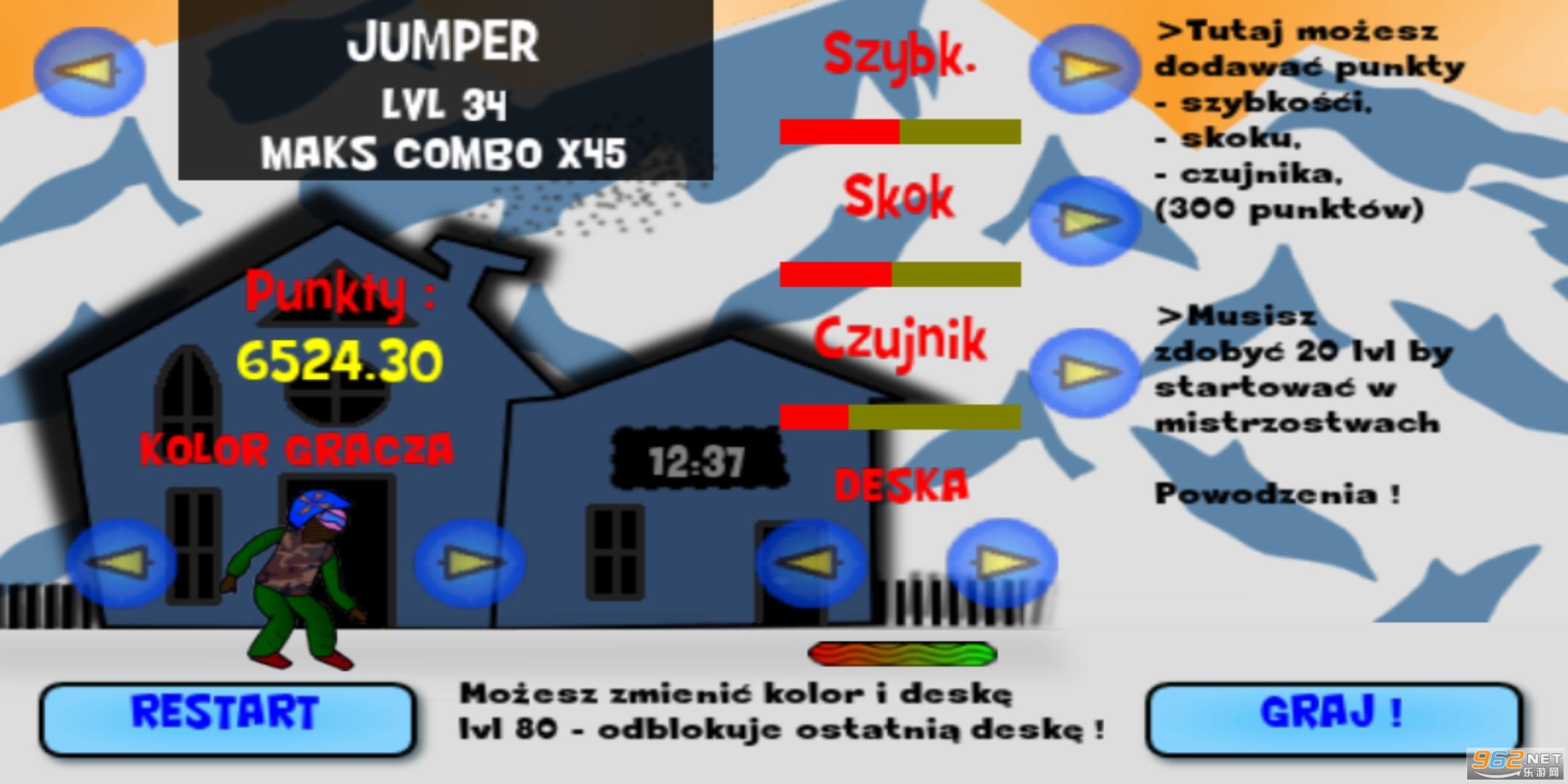 街机风格的游戏,我们通过执行各种技巧获得积分。我们可以通过增加玩家跳跃的速度和高度来使用它们。