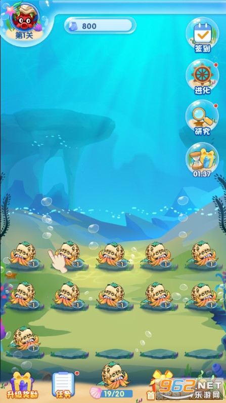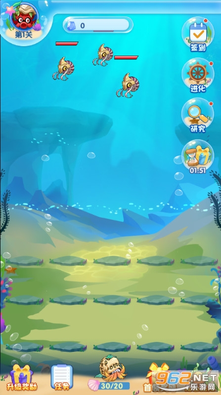 合成海底动物进化升级,打败入侵的敌人,闯关升级