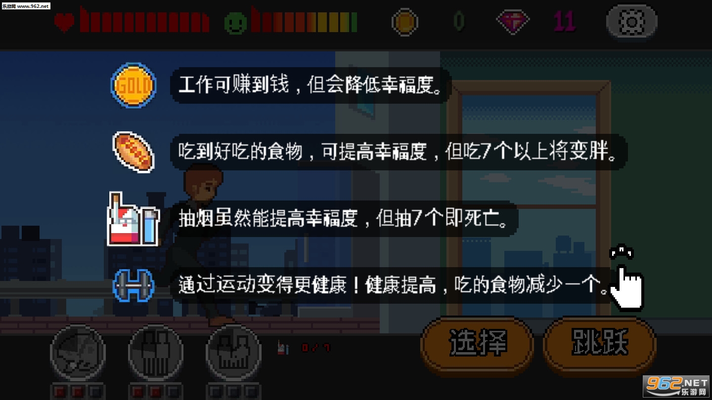 横版游戏,在游戏中获得的Coin的种类和数量,以及Choice按钮的选择决定现在和未来的你。