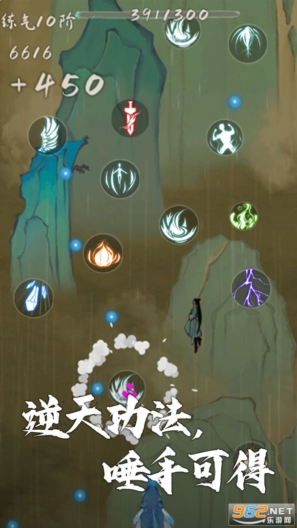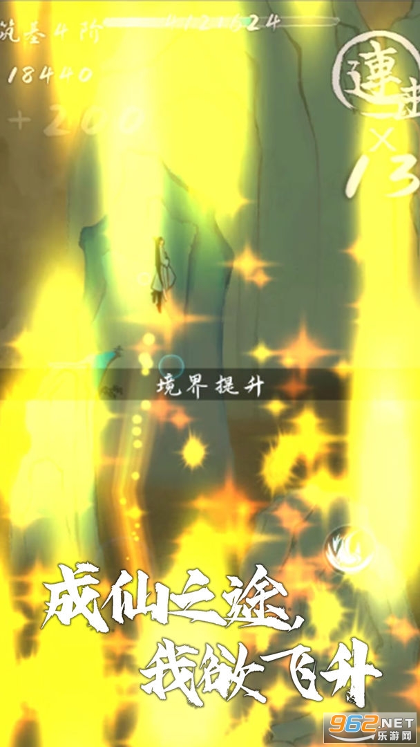 --躲避障碍怪物,使游戏角色不断上升,获得一定灵气量突破至下一境界;