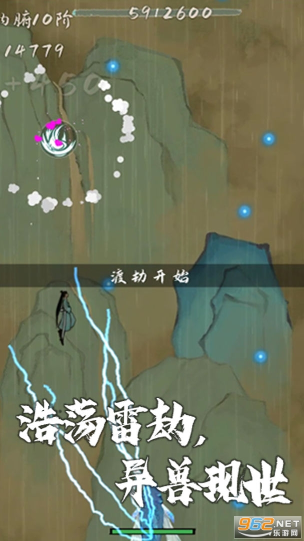 --到每个境界的9阶时,开始【渡劫】,需要控制游戏角色尽可能多的捕捉灵气与功法击落追击的怪物。