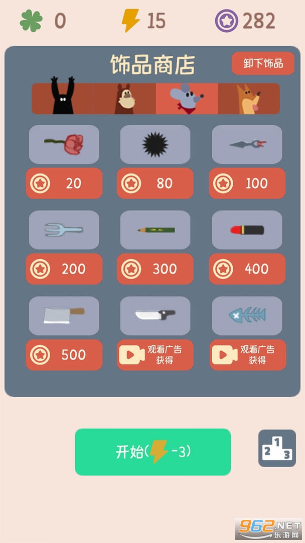 操作小动物们完成各种游戏,内有4款小游戏——打拳的兔子,跳水的浣熊,扔飞刀的老鼠,踩滑板车的狗。