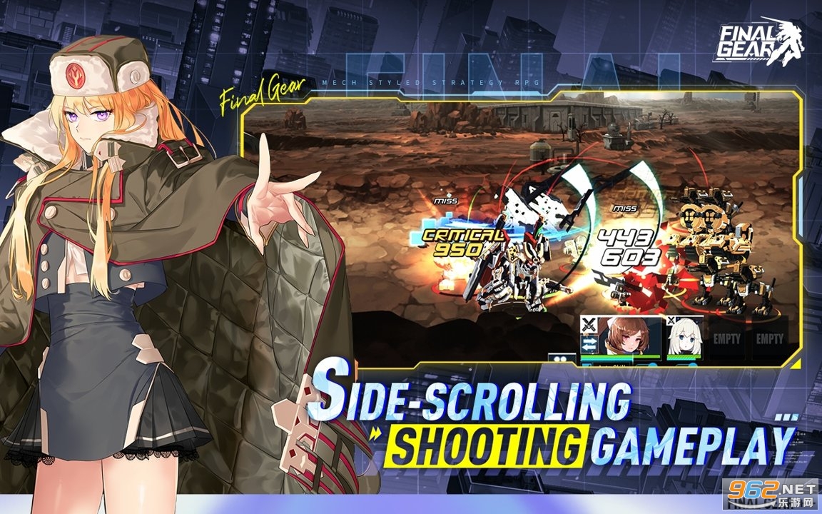 《Final Gear机械与少女手游》是一款非常好玩的全新战略RPG游戏,这款游戏不但画面表现给力,还有超多美女角色可以任你使用,闯关每一关的关卡,游戏经过破解处理,包含强大的作弊器,感兴趣的朋友还在等什么?欢迎来962下载吧!