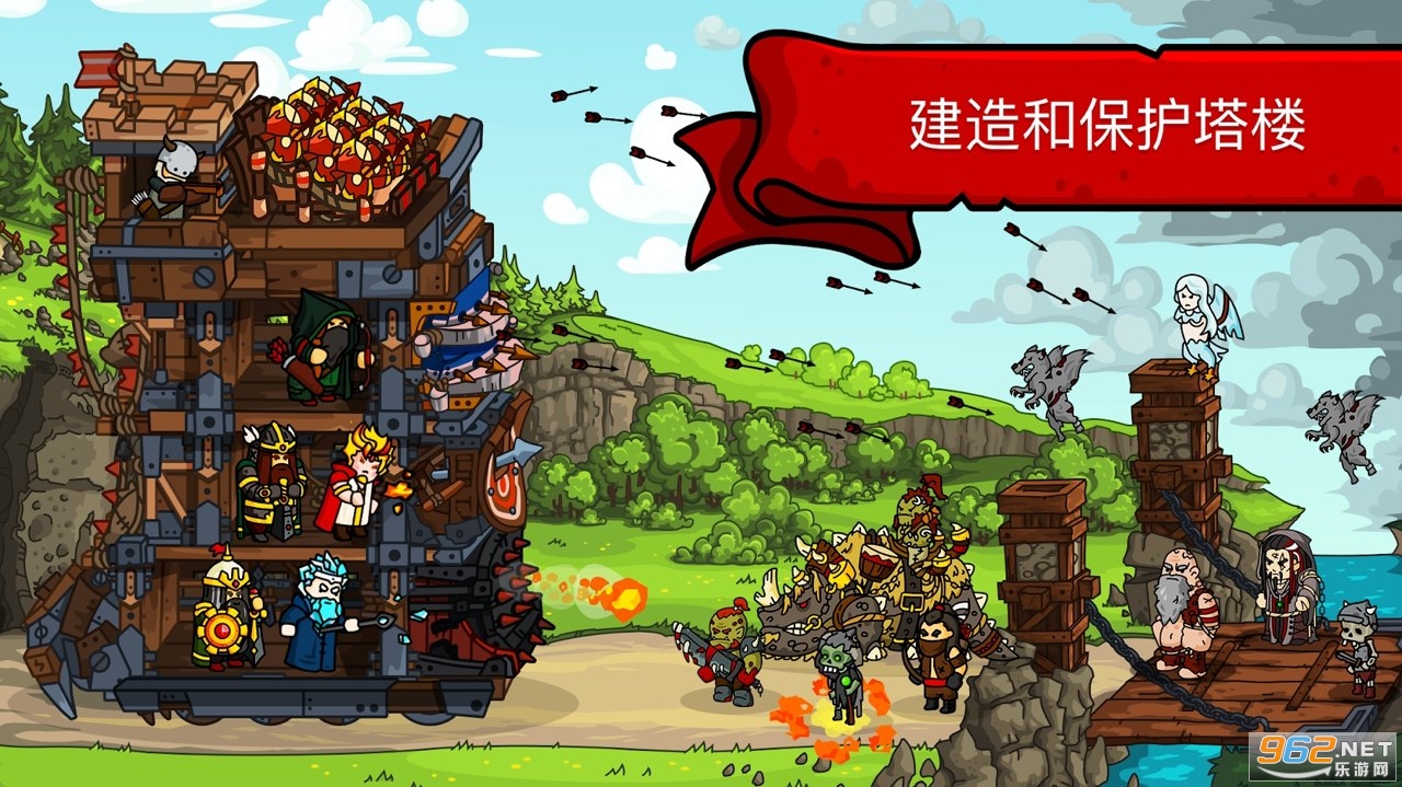 2、不断的壮大塔楼,保护自己的城堡免受强盗、兽人和不死族的攻击,胜利后得到很多资源;