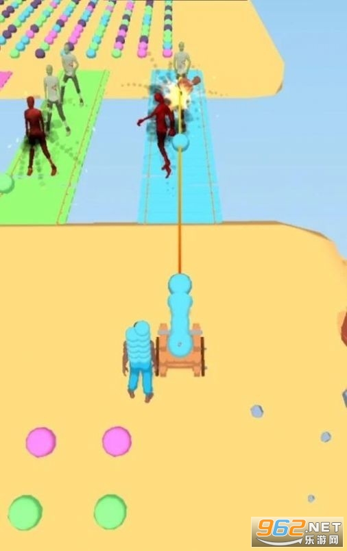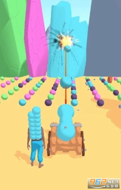 《捡炮弹竞赛Cannonball Race》是一款捡炮弹进行射击的游戏,玩家拾取地上相同颜色的炮弹射击前方同颜色的障碍物,不断的摧毁一个个障碍来完成游戏。
