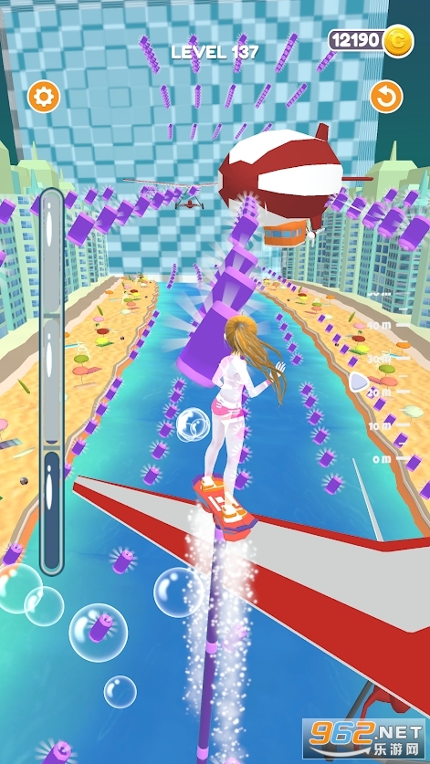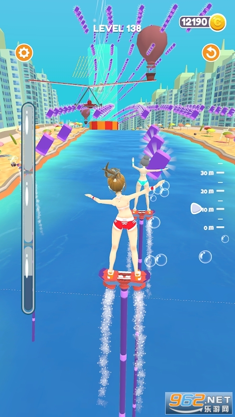 《飞板比赛FlyBoard Race》收集管子走得更快更高。与其他人比赛,先看到终点线。新颖的水上飞板竞速游戏,玩家在游戏中将可以操作水上飞板,通过挑战各种各样的竞速关卡获得精彩的称号。