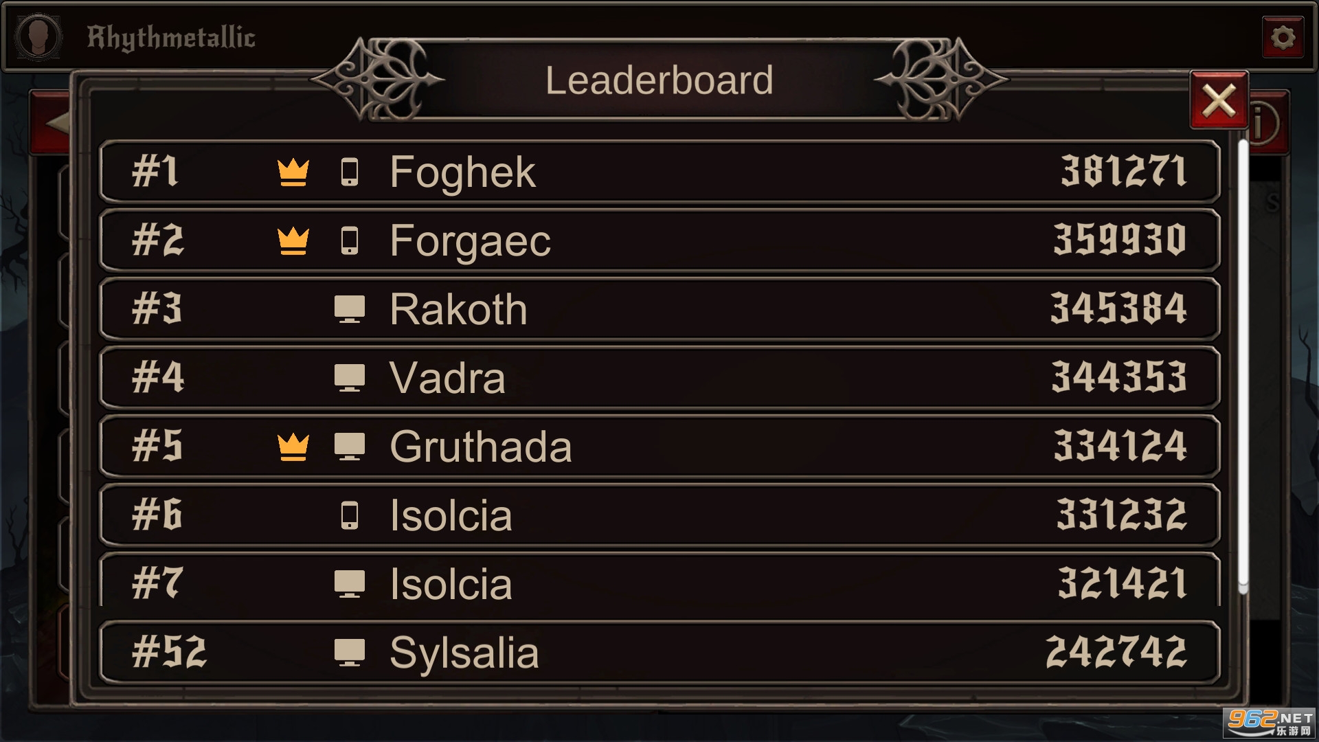 为了增加刺激,我们的重金属音乐节奏游戏拥有为音乐大师准备的全球排行榜。登上排行榜榜首,证明你是一名熟练的金属吉他手,可以混合重金属乐的能量与黑暗。