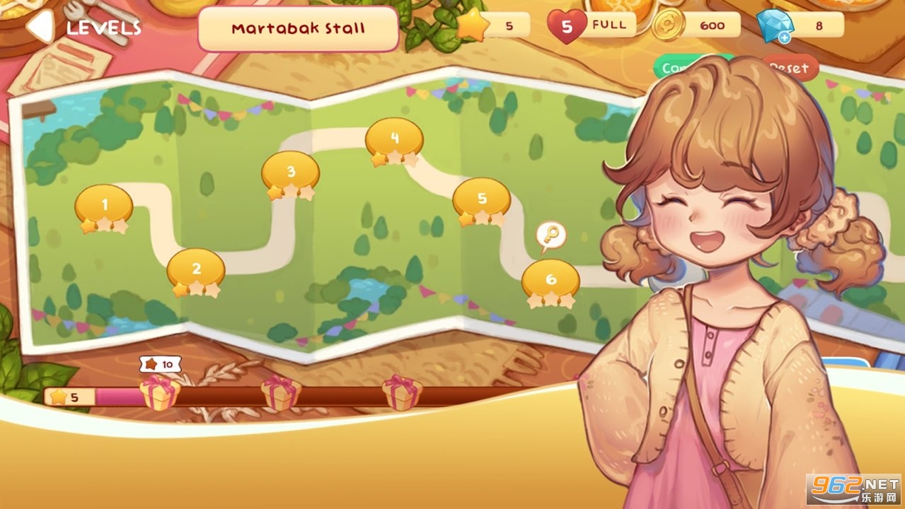 一款有趣的时间管理烹饪游戏,游戏有着可爱温馨的画风,你将接待一位位客人用餐。游戏的操作简单,按照顺序来制作出不同的美食,不断的建设你的摊位,推荐给喜欢休闲游戏的玩家。