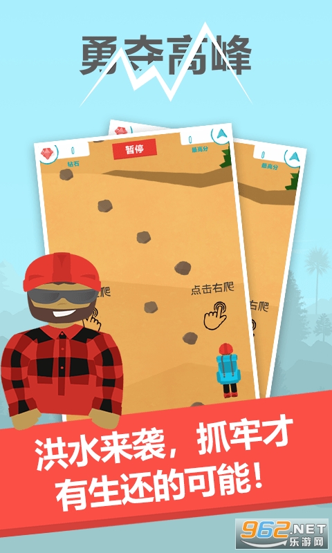 勇夺高峰是一款非常有趣好玩的模拟攀岩生存手游。在游戏中,玩家需要面对非常高的山峰。通过点击屏幕,他们可以顺利攀登高峰。游戏画面简洁清新,特别适合玩家消磨闲暇时光。心动的话千万不要错过勇夺高峰哦。