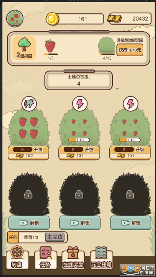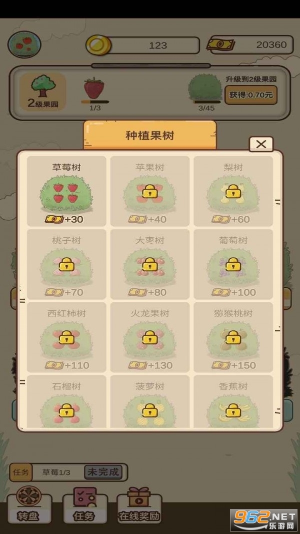 《外婆的森林游戏安卓版》是一款种植果树玩法的休闲游戏,玩家去开垦森林,种植各种果树,为果树浇水施肥,让树苗成长,收获果实,来下载游戏吧。