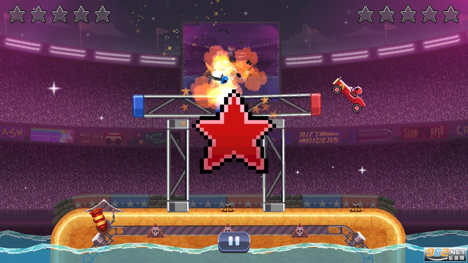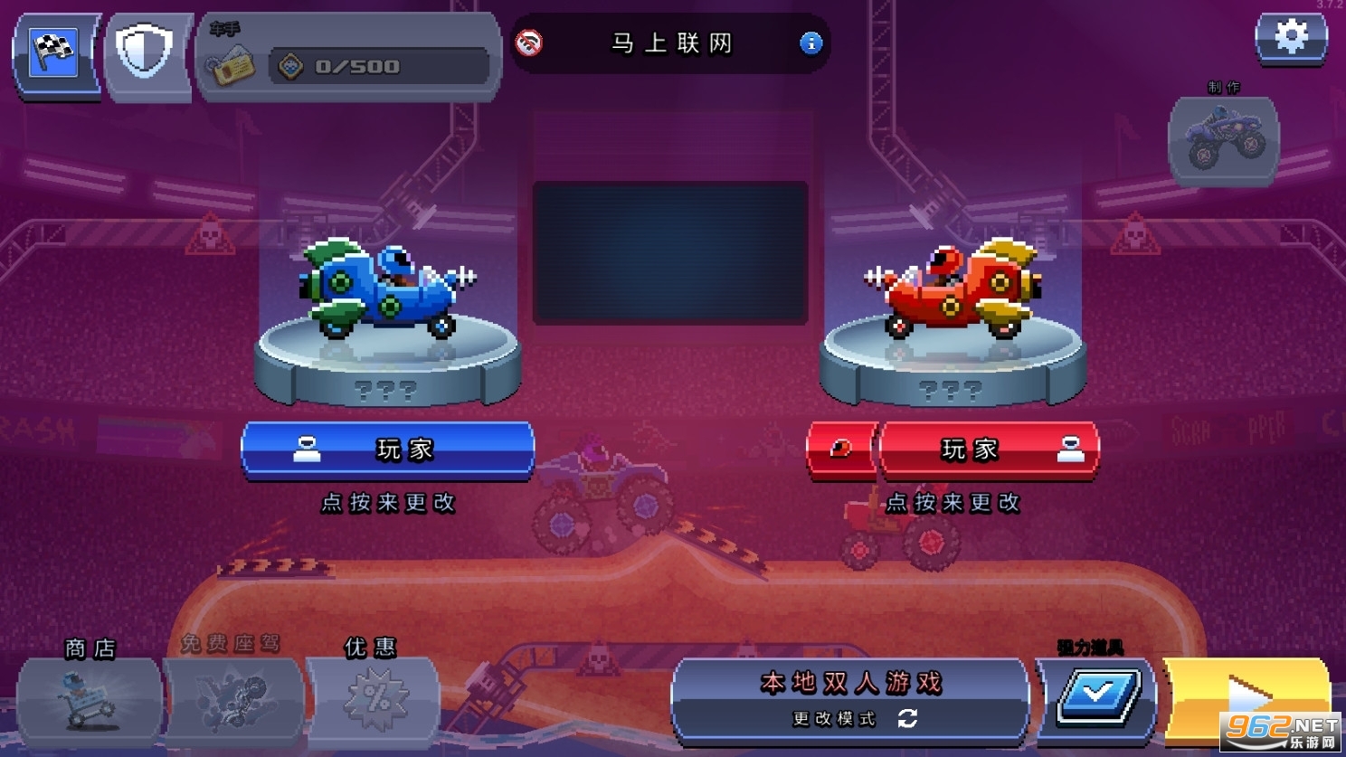 1、对冲撞击玩法的赛车格斗游戏;