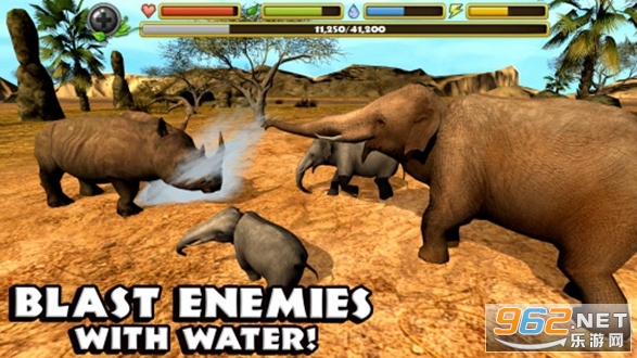 游戏中大象不仅可以用强壮的身体,还能用鼻子喷水攻击