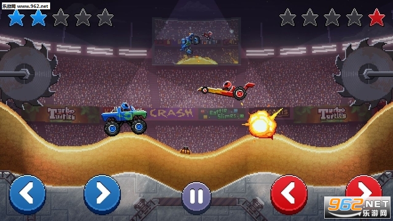 1、对冲撞击玩法的赛车格斗游戏;