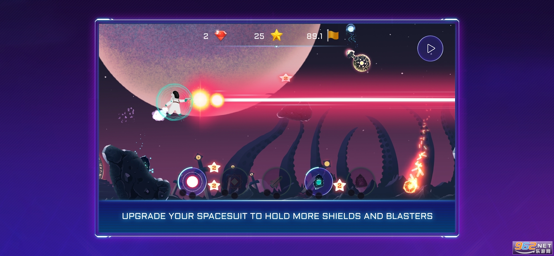 升级你的宇航服以容纳更多的盾牌和爆破器