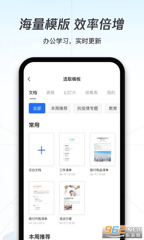云端实时编辑,内容自动保存,不受网络影响;支持会议纪要、日报等Word/Excel模板。