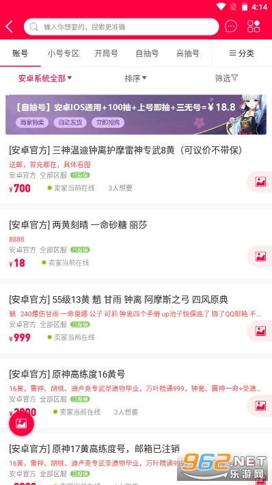 《淘手游交易平台手机版》是国内比较可靠的手游交易平台,之前王思聪的直播账号也在此平台上出售,相信其受信任的程度还是挺高的,支持上千款手游,快速发布,比其他平台节省80%的时间,并且安全有保障。