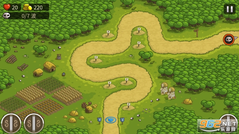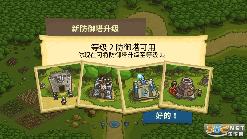 建筑:游戏中有4基本建筑:箭塔、法师塔、兵营和火炮塔。每种建筑都可以进行升级,当升到第四级时,出现转职选项,可以二选一。升级到高级建筑后,还可以配备2至3种专属技能。